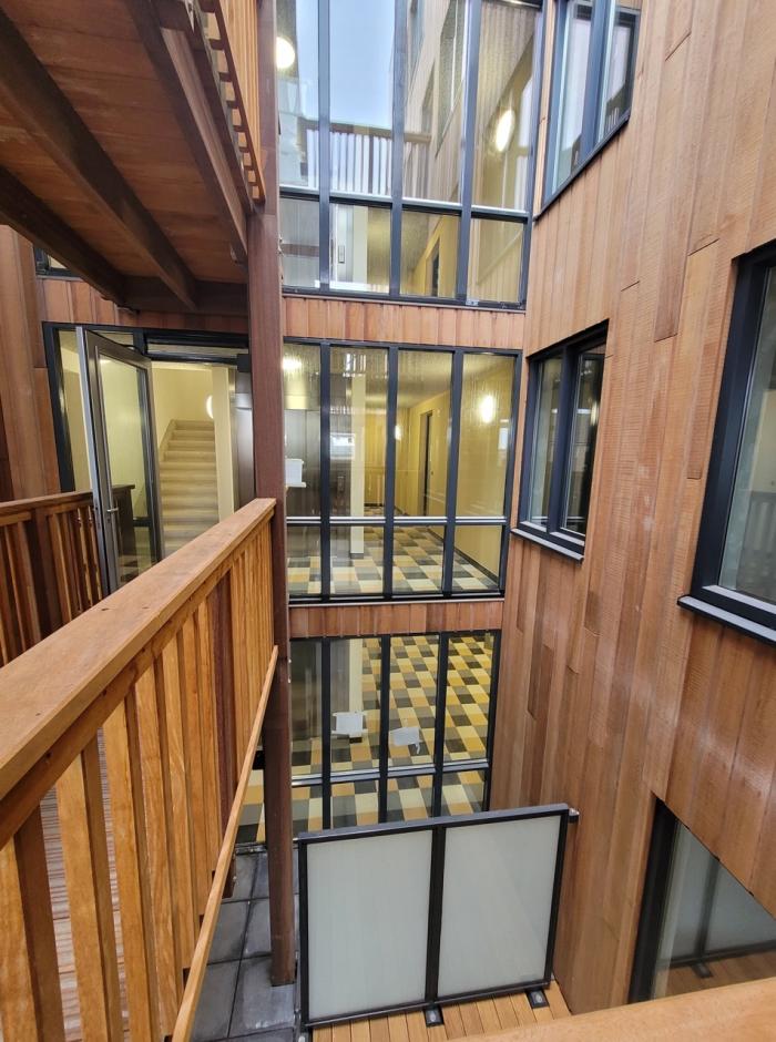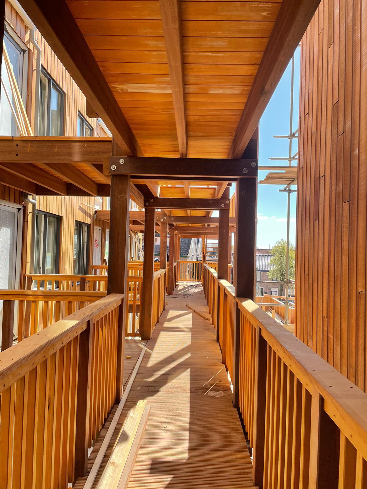 Het achterliggende wijkje bestaat uit voornamelijk lage woningbouw en is aan het begin van de vorige eeuw, tijdens de crisistijd gebouwd. De nieuwe architectuur is een hedendaagse referentie naar de oude stadspakhuizen die zich aan de overzijde van het kanaal bevinden. De strakke vormgeving is zeer terughoudend en sober gedetailleerd. De balkons spelen een eigenspel, ze stellen de dynamiek van de omgeving voor door ze onregelmatig over de gevel te strooien. De baksteen sluit aan bij de woningbouw elders in de wijk. De nieuwbouw is in tegenstelling tot de kleinschalige woonwijk omvangrijk en hoog. Op de hoek van de Eilandwal en het Oudorperdijkje verrijst dit complex ‘woonpakhuizen’ met minstens vijf verdiepingen en het gebouw zal de entree en afsluiting vormen van de in de nabije toekomst grootschalige ontwikkelingen op het Schermereiland en langs de oever van het Noord Hollands kanaal. In het ‘woonpakhuizen’-complex zullen onder meer verschillende woningtypen ondergebracht zijn. Staand op het balkon aan de voorgevel, met een vrij uitzicht over het kanaal, zullen de toekomstige bewoners zich koning te rijk voelen in hun woning