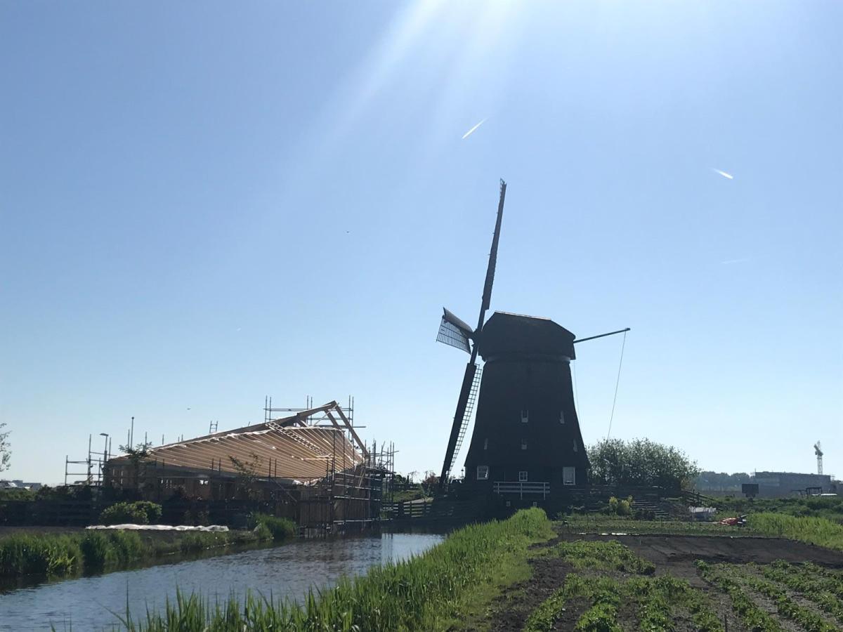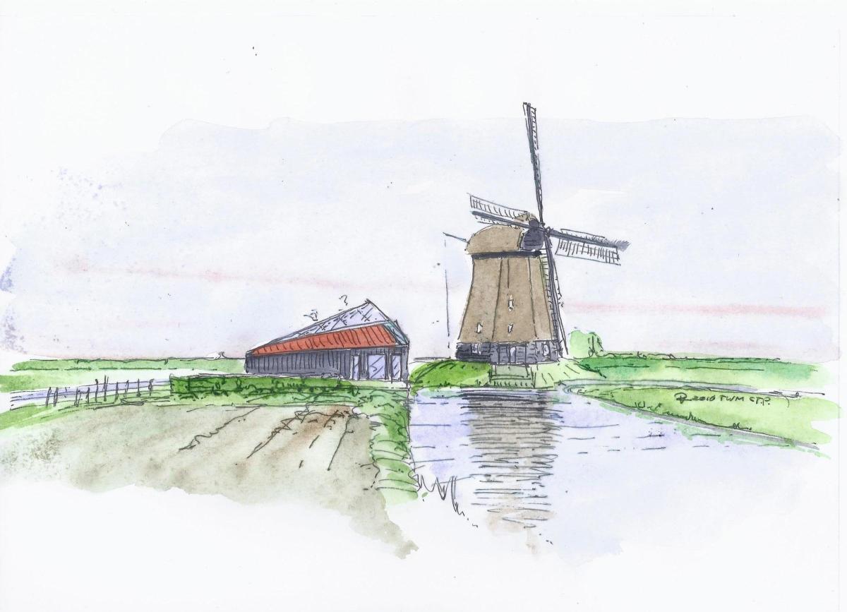 Vanuit “De Vijzel” is de molen prominent zichtbaar.