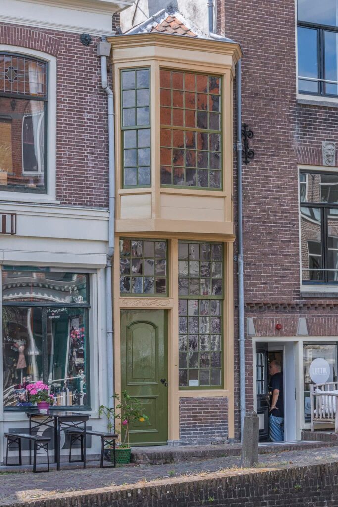 Het smalste huisje, met een breedte van slechts 2,20 meter, is gebouwd rond 1765 en maakt deel uit van een groter complex dat doorloopt tot aan het Fnidsen  Tot 2020 was het verbonden met de werkplaats van ‘de Alkmaarse Glazenier’; inmiddels bezit en bewoond de architect en bouwhistoricus Rob de Vries het pand en leidt hij de restauratie in stijl.