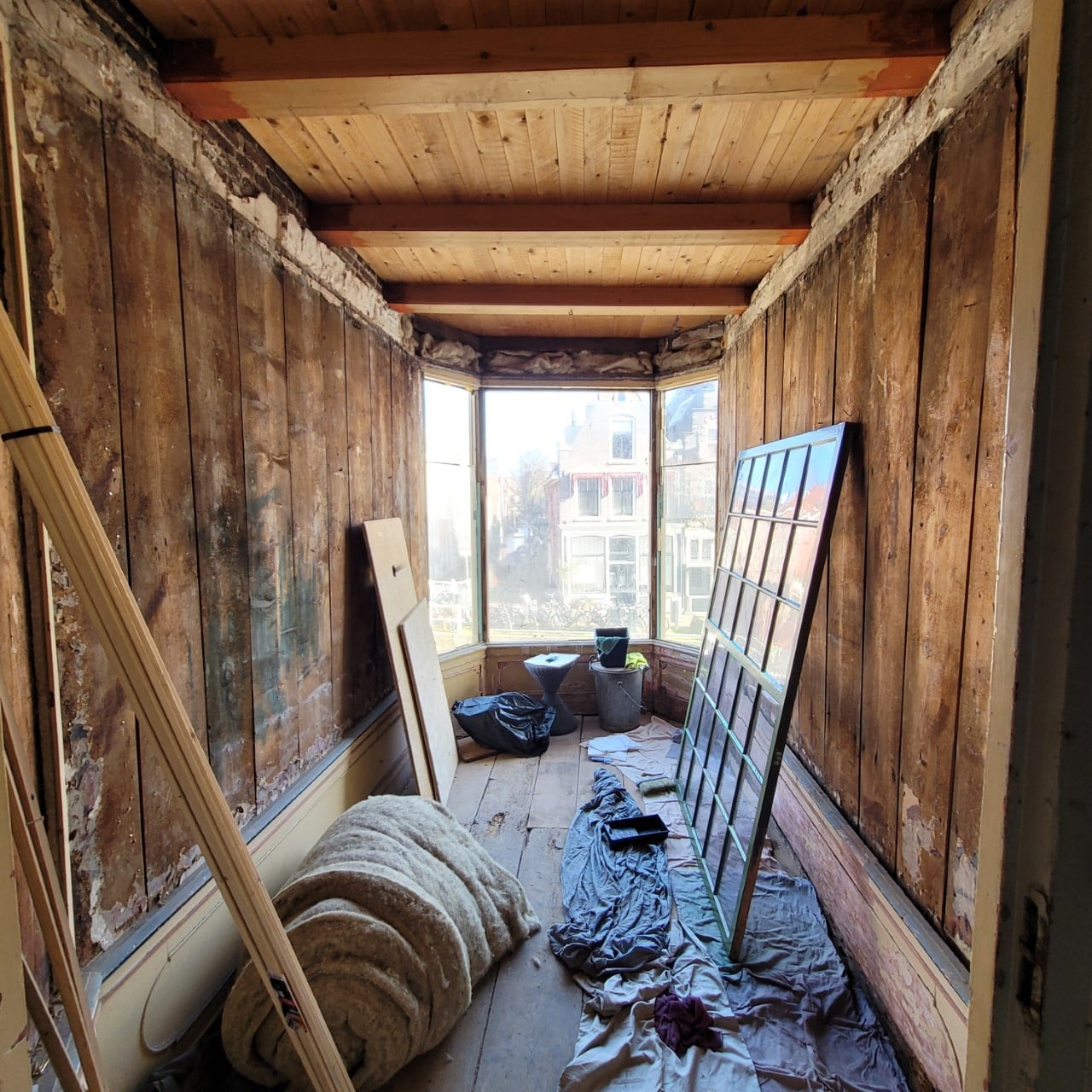 Nu, decennia later, voert Rob de Vries datzelfde plan alsnog uit—op een milieuvriendelijke, ‘orthodoxe’ wijze, waarbij hij historische materialen respecteert en alleen biologisch verantwoorde isolatie gebruikt.