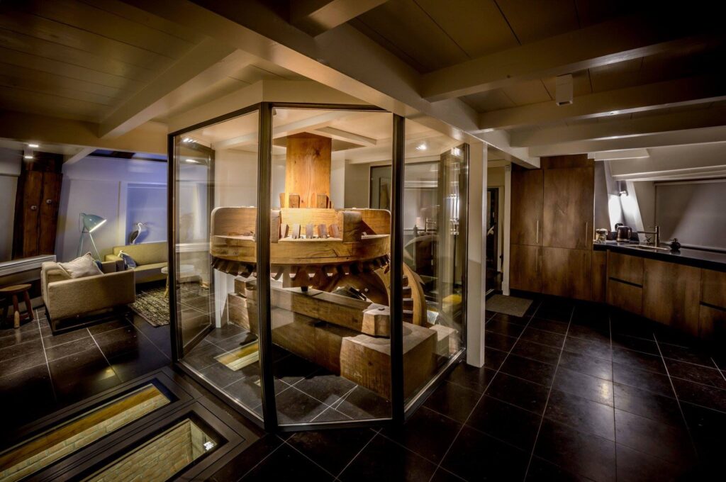 De nieuwe vormgeving van het interieur is volledig in dienst van de ambitie van de opdrachtgevers Suzanne Jong en Rob Basten om de molen in te zetten voor educatie doeleinden. Het gehele gaande werk, van wieken tot vijzel en van wind tot water is in een oogopslag zichtbaar. Gelijk is de constructie van de molen duidelijk afleesbaar. http://www.twuyvermolen.nl/